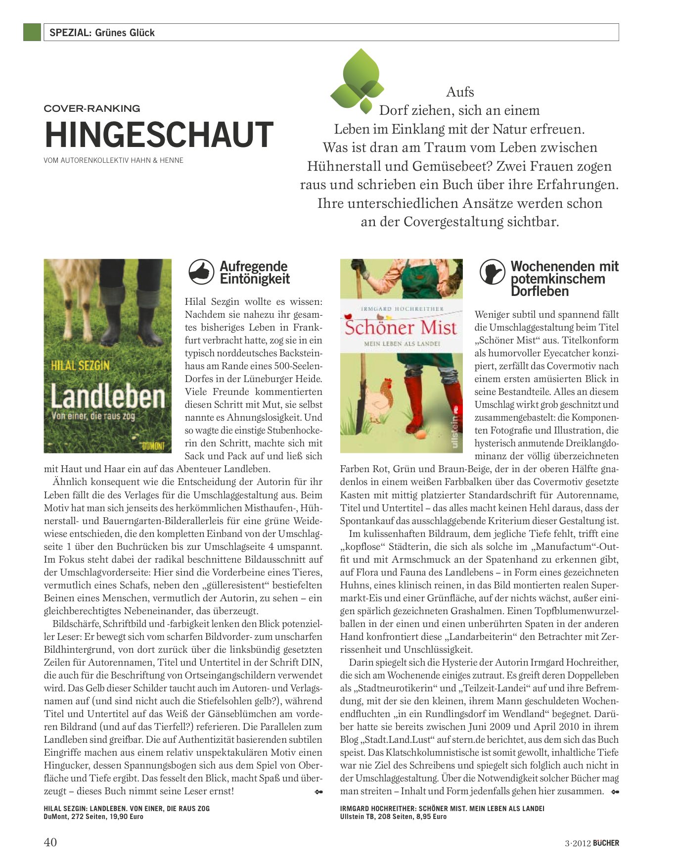 Aufs Dorf ziehen, sich an einem Leben im Einklang mit der Natur erfreuen. Was ist dran am Traum vom Leben zwischen Hühnerstall und Gemüsebeet? Zwei Frauen zogen raus und schrieben ein Buch über ihre Erfahrungen. Ihre unterschiedlichen Ansätze werden schon an der Covergestaltung sichtbar.