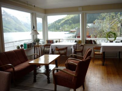 Der norwegische Schriftsteller Jostein Gaarder, Autor von „Sofies Welt“, hat eine besondere Beziehung zum Hause Mundal. Als Teenager soll er im Sommer stets die Schweine gehütet haben. Noch heute kommt Gaarder regelmäßig ins Hotel, wo er sein eigenes Zimmer mit Schreibtisch hat. Gebrauchte Exemplare seiner Werke gibt es in dem Bücherdorf natürlich ebenfalls. Zum Beispiel im Haus „Tusund og ei natt“ an der Fähranlegestelle, wo die Kategorien Philosophie, Historie, Botanik und Krimi abgedeckt werden. Nebendran im ehemaligen Warteraum findet man Literatur rund um das Meer. „Kauf mich, lies mich“, rufen die Bücher uns zu. Zum Glück sind viele auf Norwegisch und somit können wir der Versuchung leichter widerstehen.